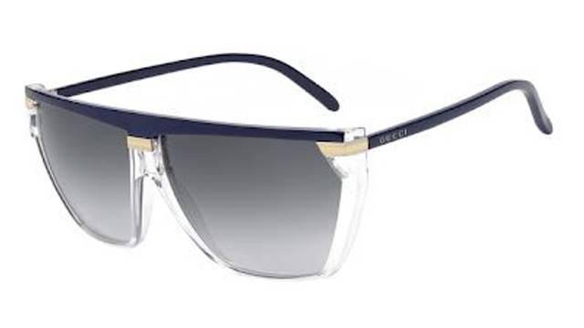 Occhiale da sole Gucci, montatura trasparente e blu, con lente sfumata grigio